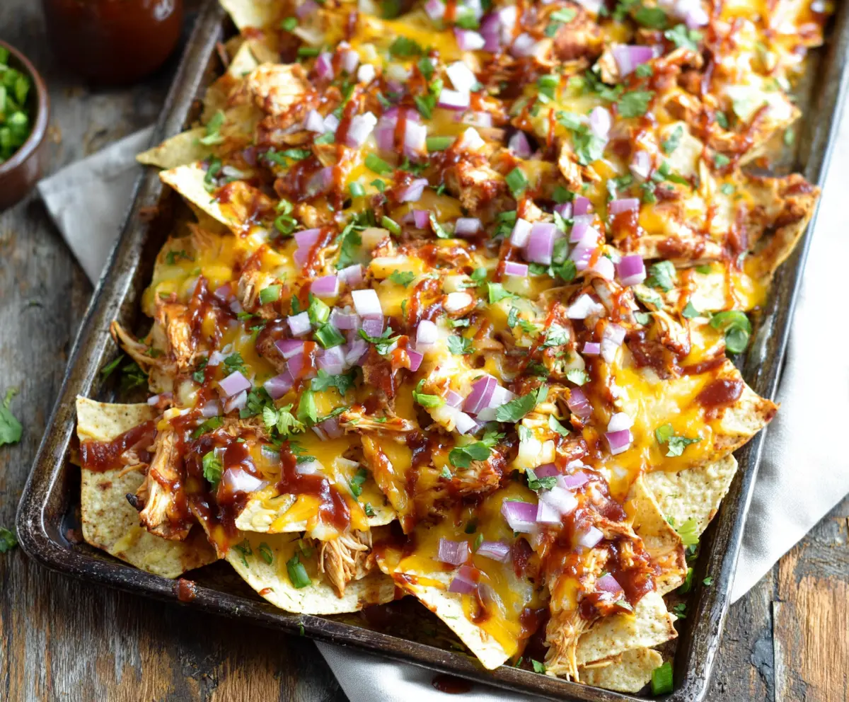 Delicious Sheet Pan BBQ Chicken Nachos