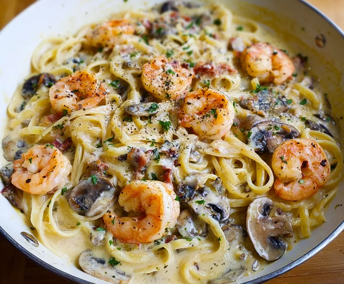 This creamy Shrimp Alfredo Pasta with Mushrooms is a comforting delight! Tender shrimp and soft mushrooms swim in a rich, cheesy sauce that’s oh-so-satisfying.