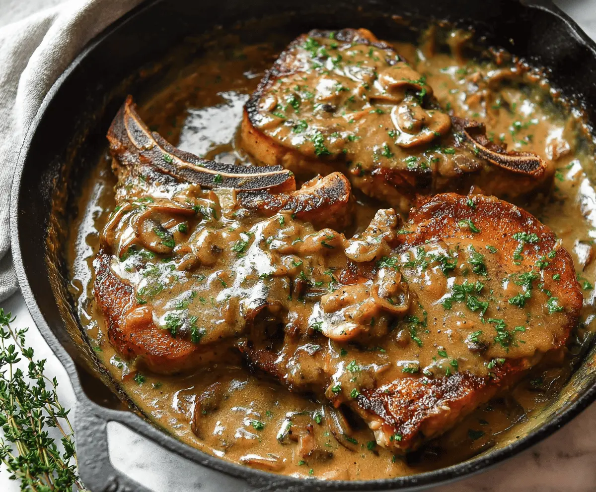 Return the seared pork chops to the skillet, placing them directly into the gravy. Reduce the heat to low, cover the skillet, and let it simmer for 15-20 minutes. This cooks the pork through and makes it incredibly tender.