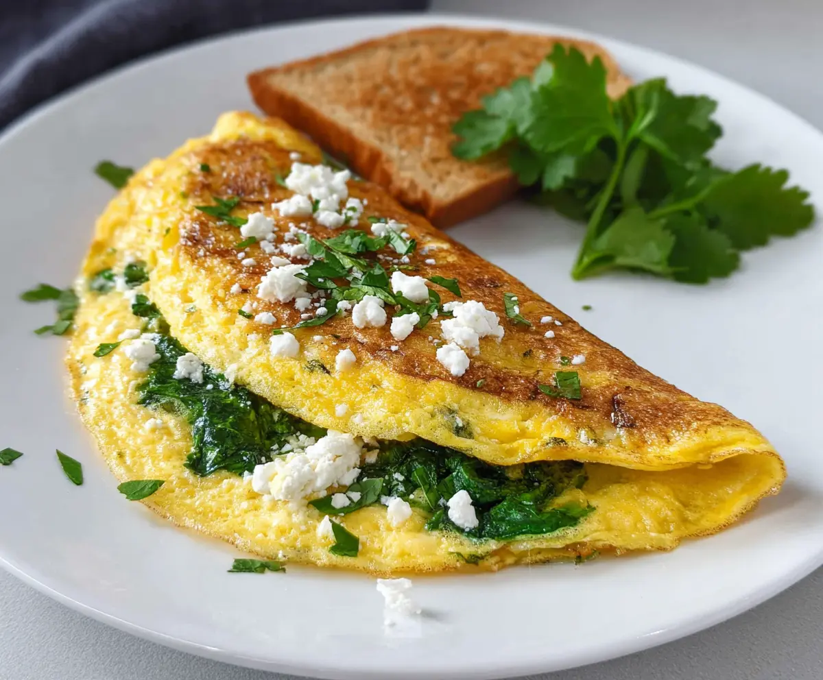 Serve your Spinach and Feta Omelet immediately with a slice of toast and some additional fresh spinach on the side. Enjoy your wholesome breakfast!