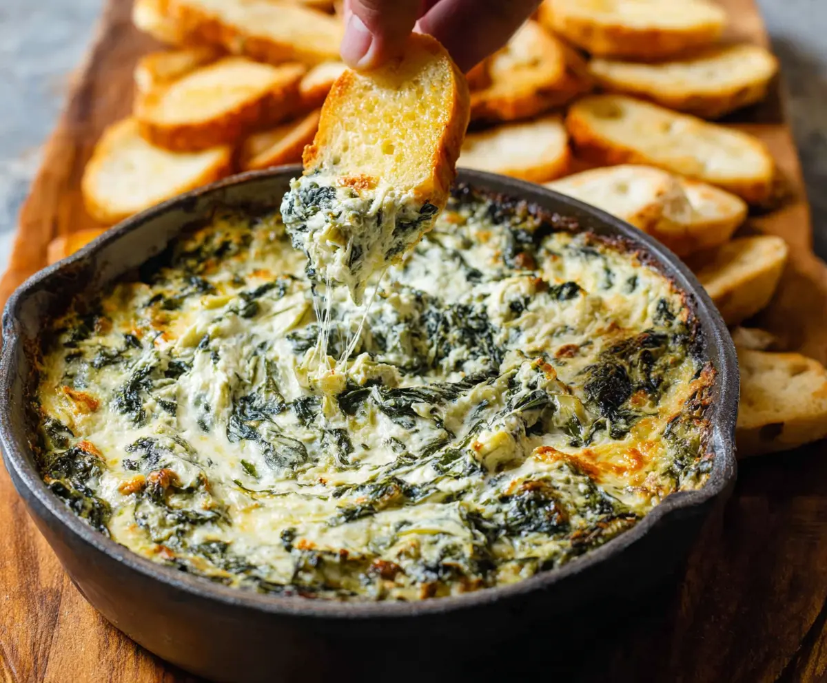 Enjoy your creamy, cheesy, and delicious spinach artichoke dip! Perfect for parties, movie nights, or anytime you crave something tasty.