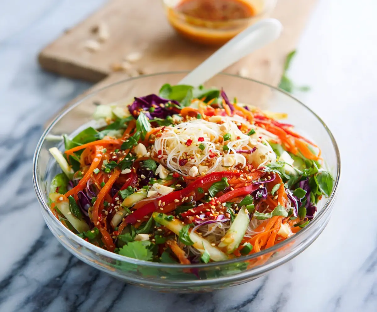 This spring roll salad is best served fresh to keep that perfect crunch in the rice paper and fresh vegetables. Enjoy this vibrant dish as a light meal or a fun appetizer that’s sure to impress!