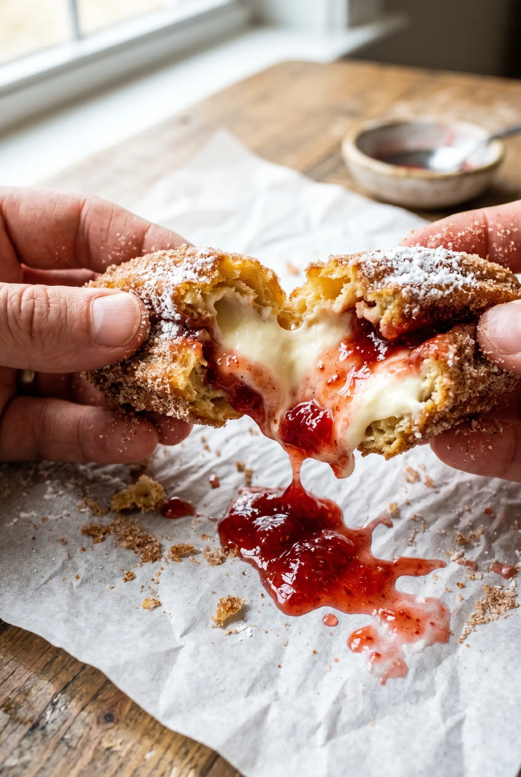 - Cream cheese — Use full-fat cream cheese for the smoothest filling and the cleanest tang. It has to be softened all the way through, or you’ll end up with little lumps that don’t disappear no matter how long you beat the mixture.