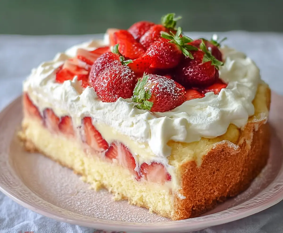 This Strawberry Custard Cake is a sweet treat that combines soft cake layers with creamy custard and fresh strawberries. It’s pretty to look at and even better to eat!