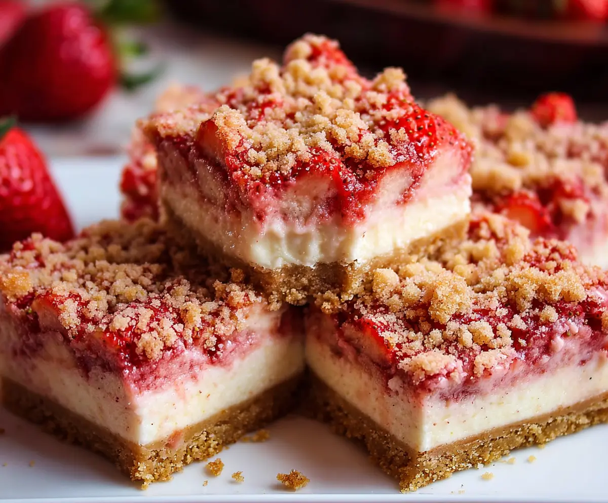 Honestly, the combination of strawberries and cheesecake is a match made in dessert heaven! I love serving these bars at gatherings because they disappear fast. 🍰