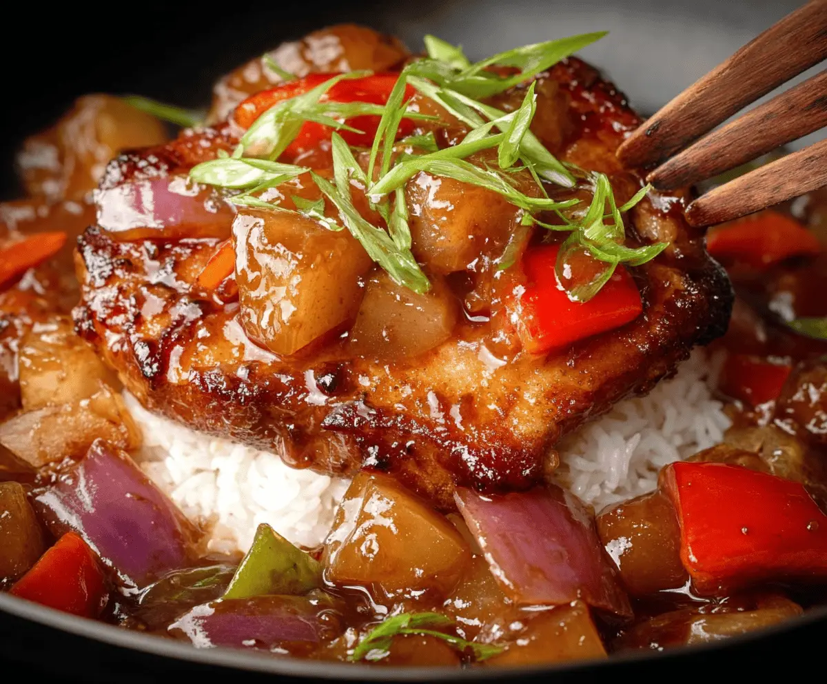 Serve the sweet and sour pork chops over a bed of fluffy white rice for a perfect meal. Don’t forget to garnish with sliced green onions for an added pop of flavor and color!