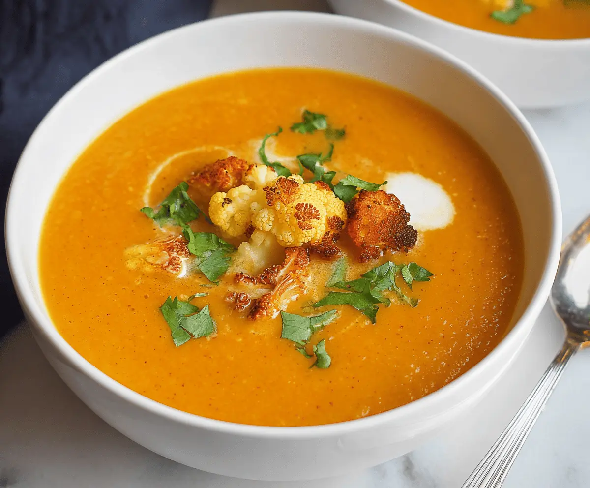 While the soup is simmering, preheat your oven to 400°F (200°C). Toss the reserved cauliflower florets in a little olive oil, paprika (or chili flakes if you like some heat), salt, and pepper. Spread them out on a baking sheet and roast for about 15 minutes or until they’re lightly browned and crispy.