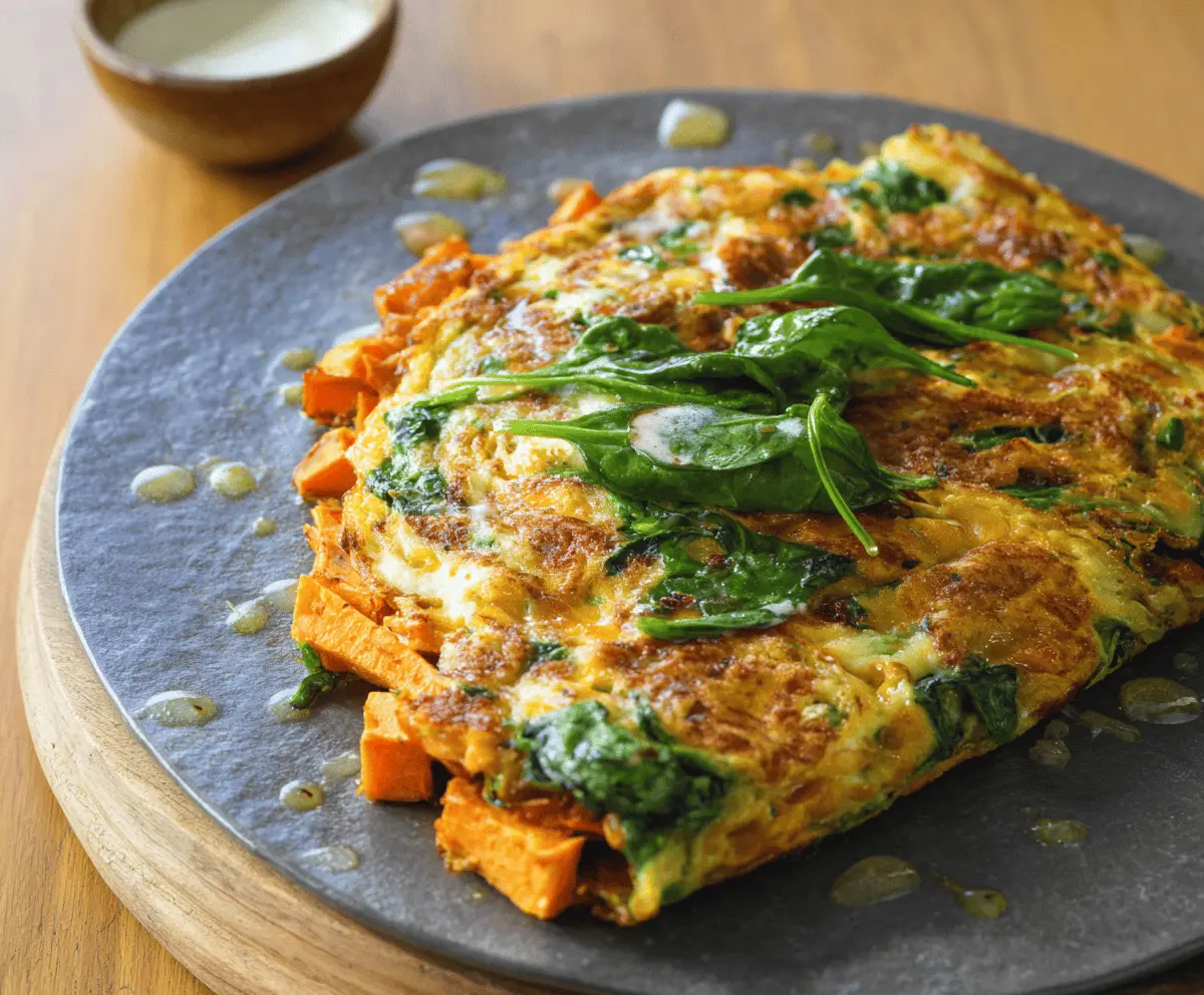 This Sweet Potato & Spinach Omelette is a bright and tasty way to start your day! With fluffy eggs, sweet potatoes, and fresh spinach, it’s packed with goodness.