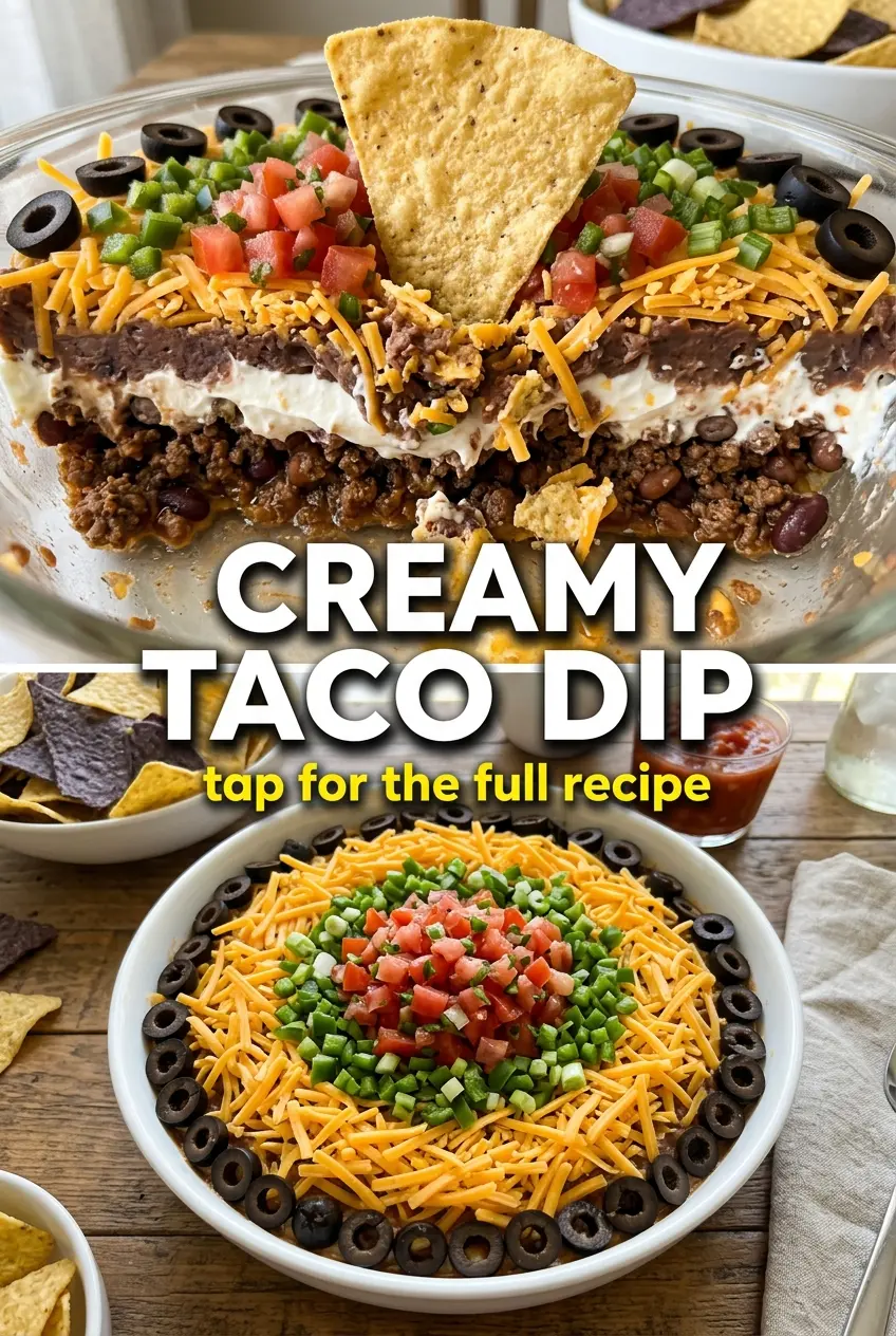 Creamy, beefy taco dip disappears fast because it hits every note people want in an appetizer: warm seasoned meat, a smooth cheesy base, and enough salsa to keep each bite bright instead of heavy. The top turns glossy and melty, then settles into that spoonable, scoopable texture that clings to a tortilla chip without sliding right off.
